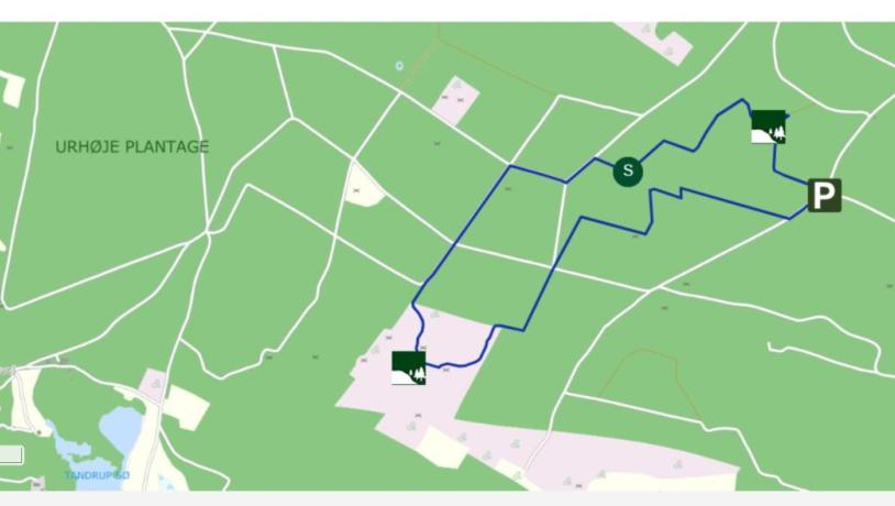 If you want to walk the red route (2.5 km) separately, we recommend parking on Fragtrupvej by the small picnic house. The Uhrehøje MTB Club has established a gravel parking area that is free for everyone to use.